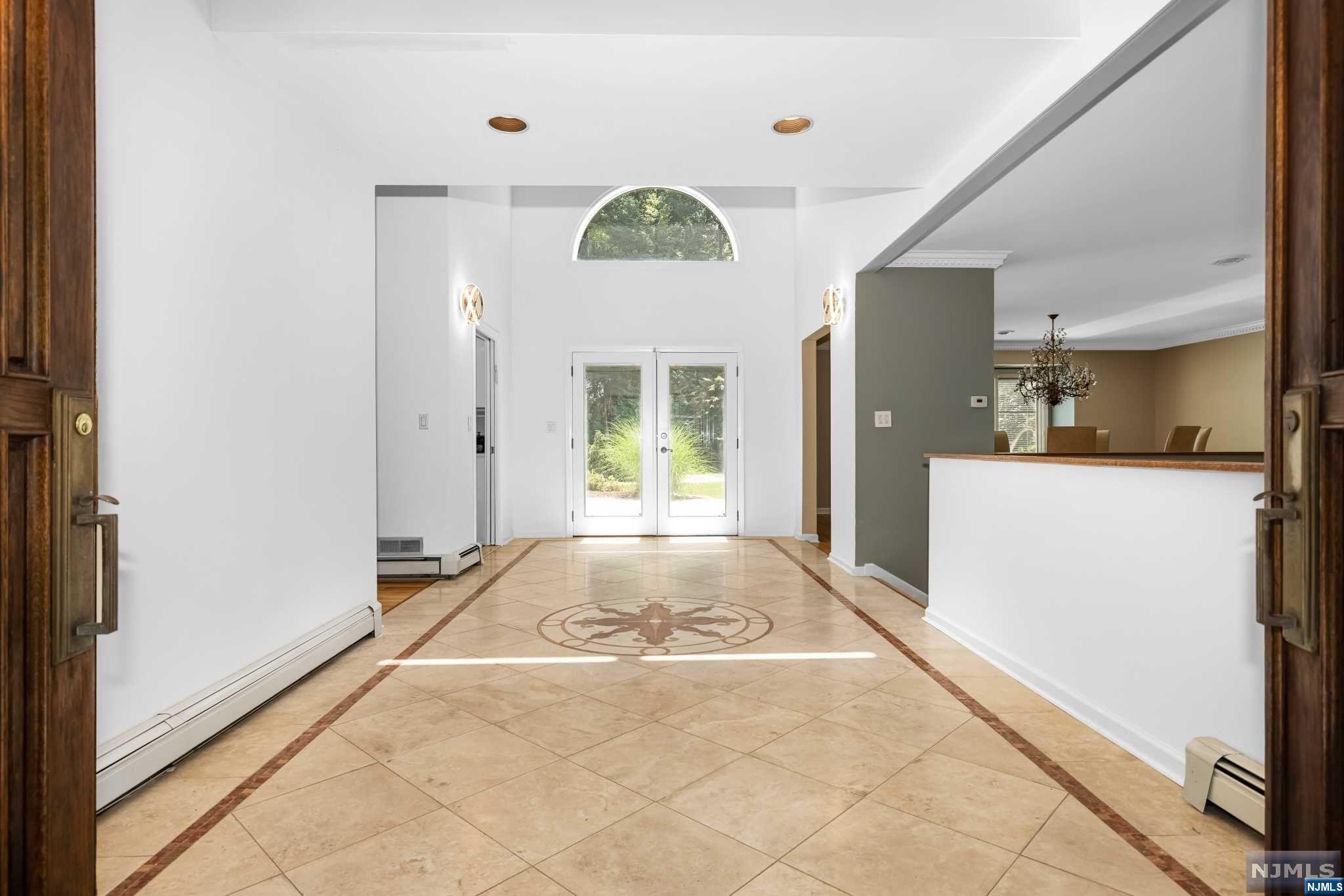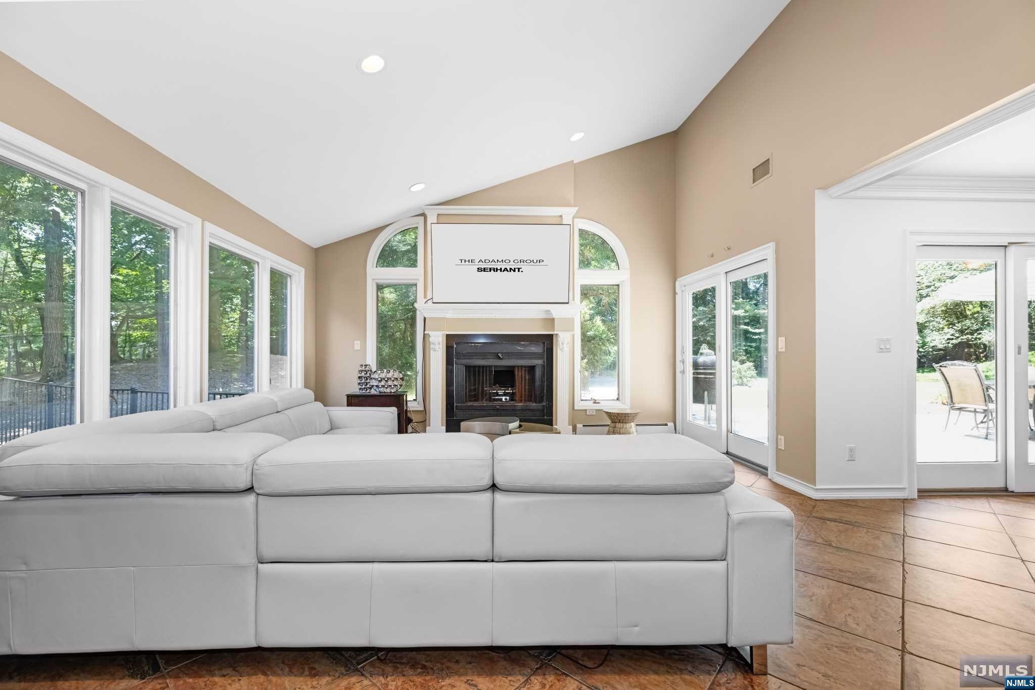 Welcome to this magnificent Contemporary home nestled in a tranquil cul-de-sac, showcasing breathtaking vistas of Lake Tappan. A grand 2 story foyer invites you into an open floor plan revealing a dramatic layout adorned with 10-foot ceilings. A dining room & living room provide the perfect setting for entertainment. The gourmet kitchen features stainless steel app, refrigerator and freezer, an island flowing effortlessly into the family room with its vaulted ceiling, gas fireplace, wet bar. Step outside to discover a private backyard oasis, complete with patio, lagoon pool & tranquil waterfall feature. A mudroom with 3 car garage access & main floor guest suite & full bath. The upper level features a luxurious primary suite with a sitting area, terrace,2 WIC & a primary bath/w a large glass shower. Loft/w picturesque views is home to a gym, 2 bedrooms & full bath. Lower level offers a rec/game room, office, bedroom, & full bath. Close to Blue Ribbon Schools & NYC transport.